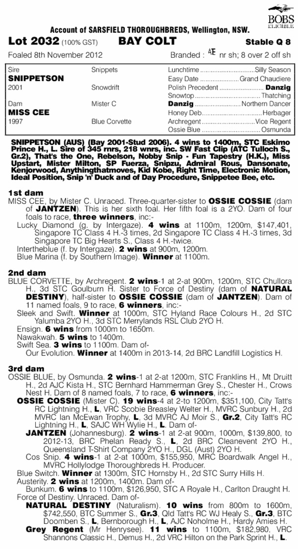The mare Miss Cee is a 3/4 sister to Ossie Cossie. She has had 4 to the track for 3 winners (Lucky Diamond 4 wins $147,401.00)